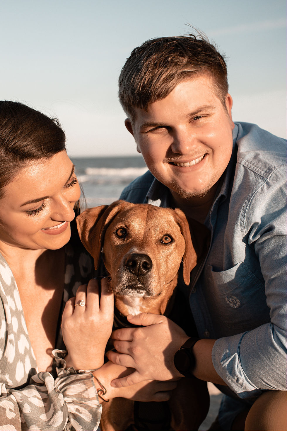 You all probably already know that Noah and I are obsessed with our dog Bree. Our friend Jared took some photos of us back in February and we brought Bree along. I knew ahead of time that she would not cooperate because the beach is way too much fun and there are way too many distractions for her to want to sit still and take a photo. This photo is pretty much the only one we were able to get and it is perfect, so we did not bring her for our engagement session. If your fur baby can handle it then bring them for sure because the pictures are priceless!